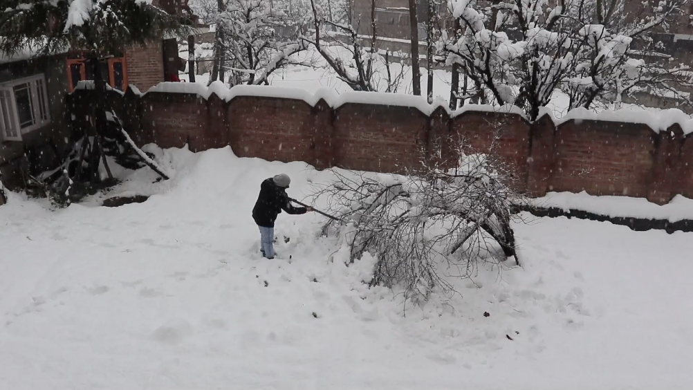 Rimon is a short film that narrates anecdotes of Kashmir’s political history while an act of saving a tree unfolds. This is the tree of paradise. The branches of the tree resist the weight of snow. The next morning, the tree is to be saved. Its’ burden is to be lightened, and a history is to be told.
